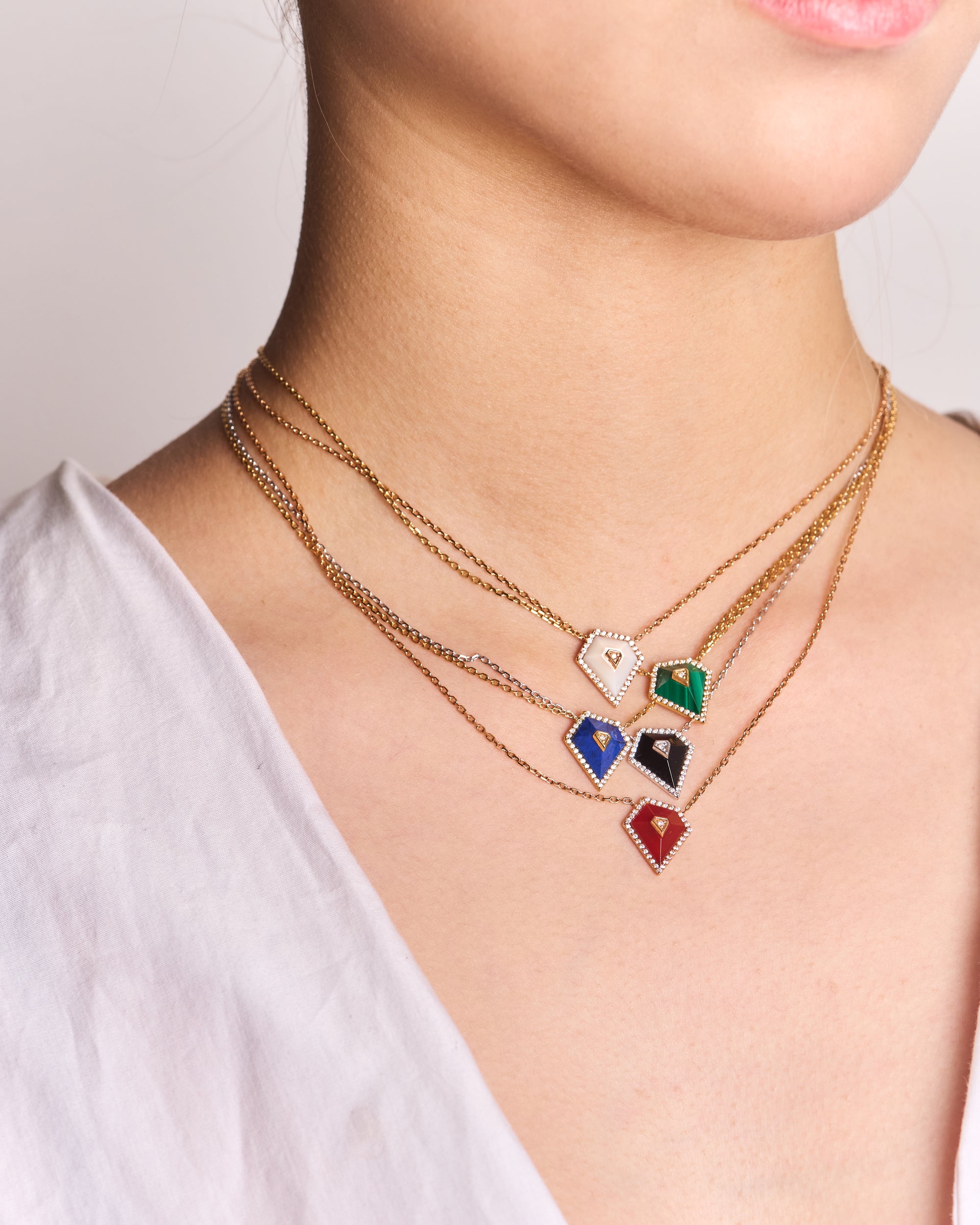 Designed by Tana Chung, the Cuore Gemstone & Diamond Pendant Necklace features a luminous gemstone framed by pavé-set diamonds, creating a refined contrast of light and texture. A center diamond adds brilliance, embodying the Cuore collection’s chic and contemporary design. Versatile and timeless, it’s perfect for everyday wear or layering.